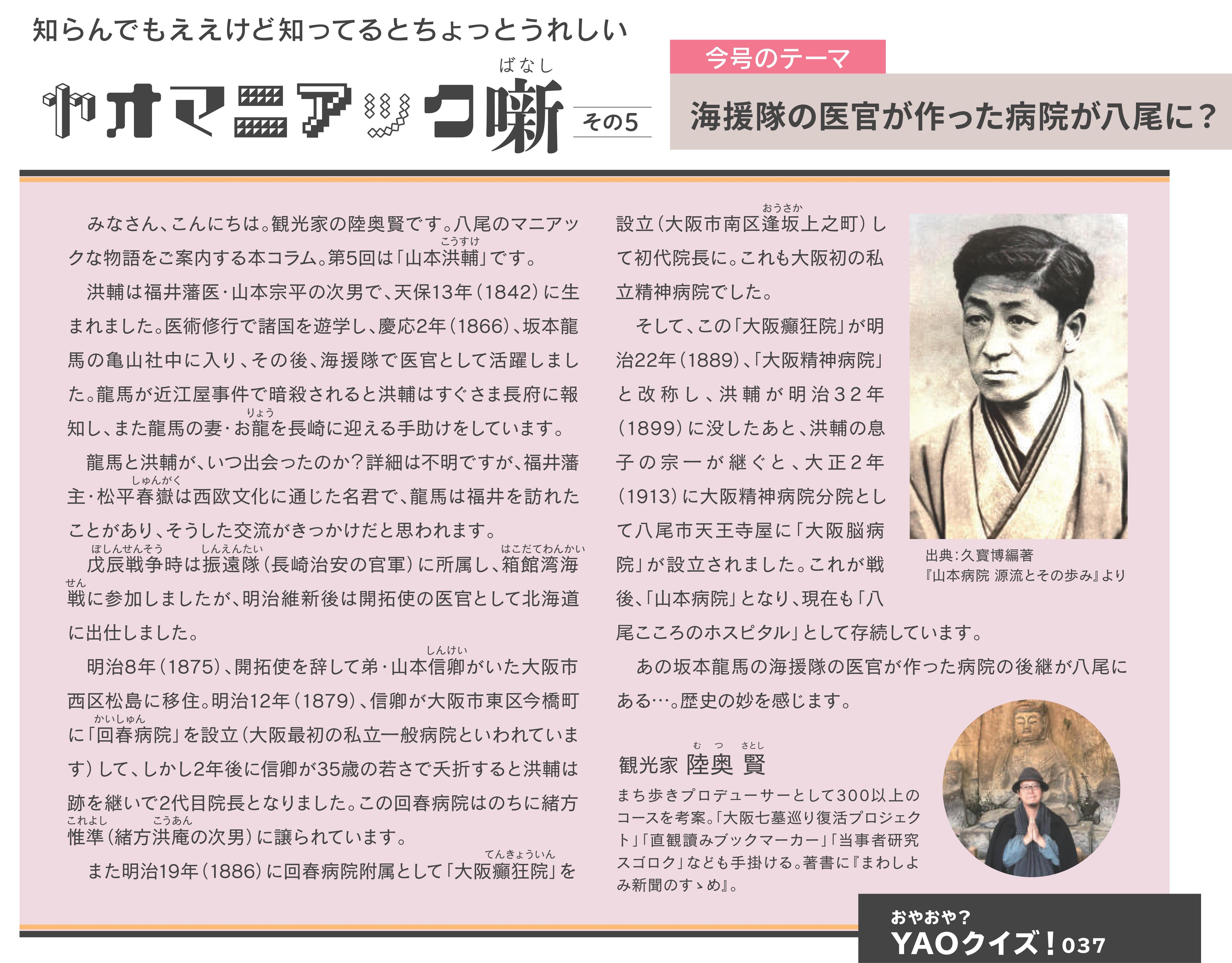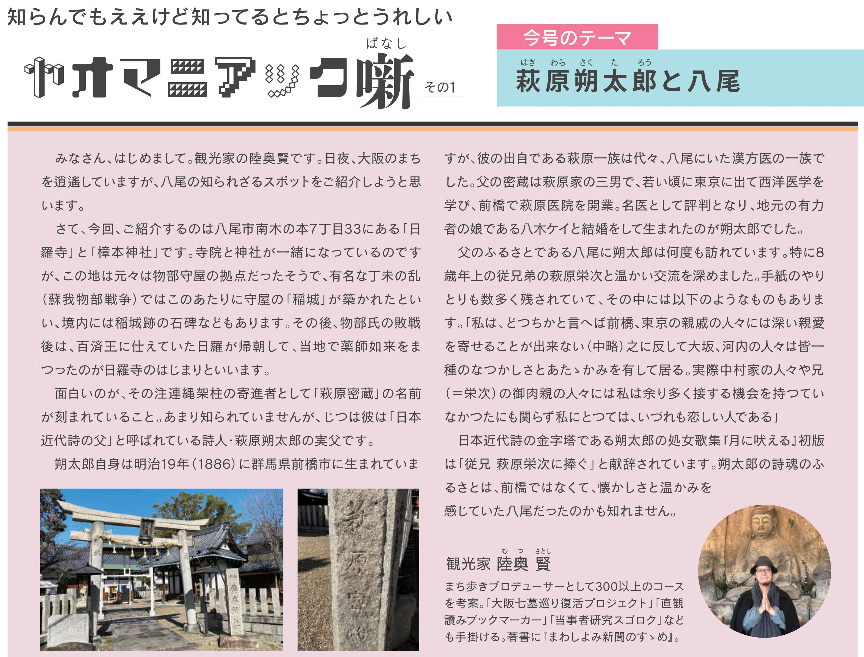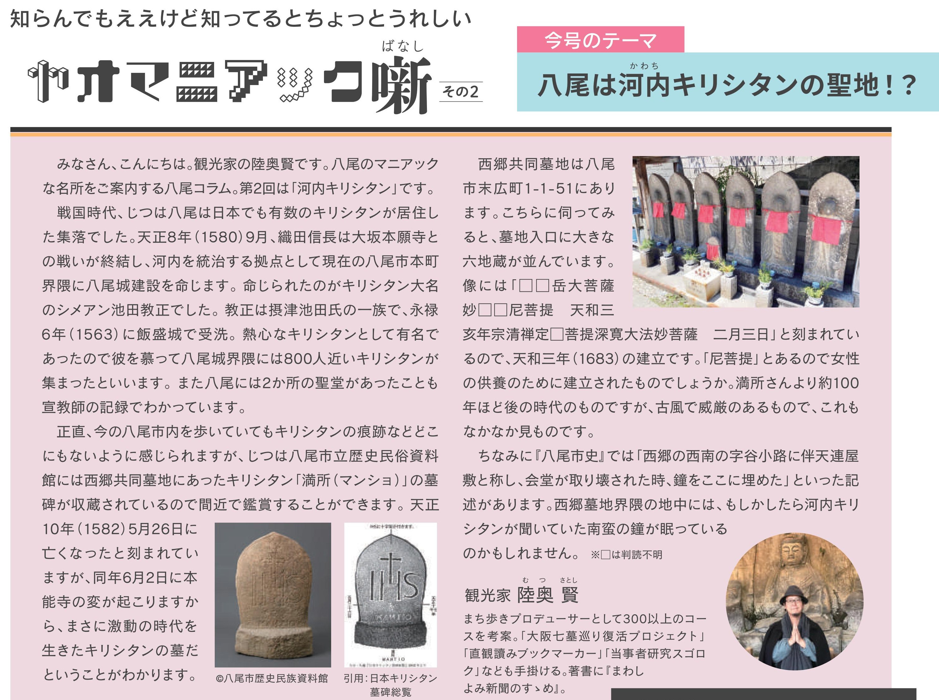 僕も一時期、『yaomania』に「ヤオマニアック噺」という八尾のまちネタのコラムを書いていたのですが、なくなったのは惜しいので再掲しておきます。
