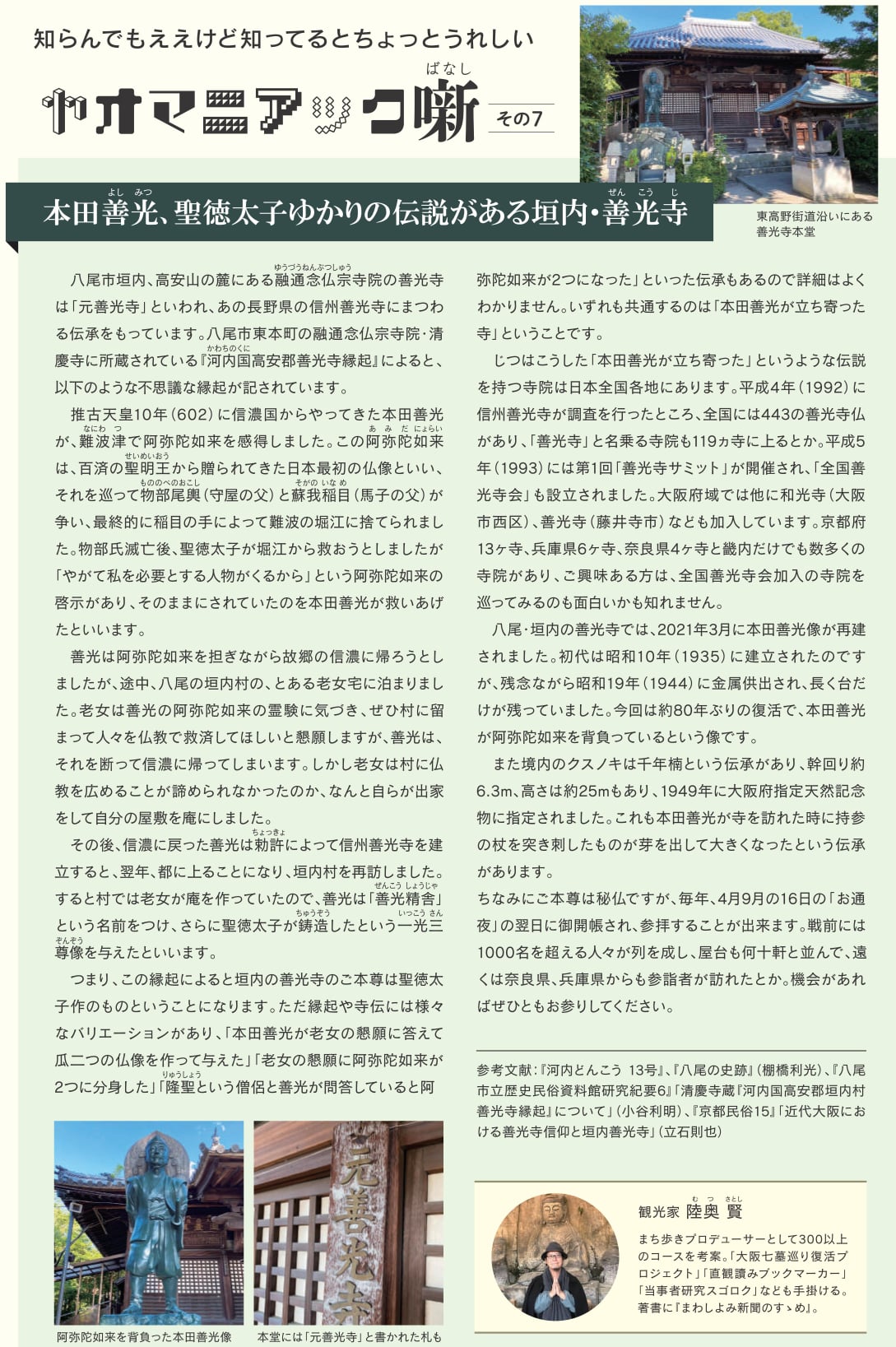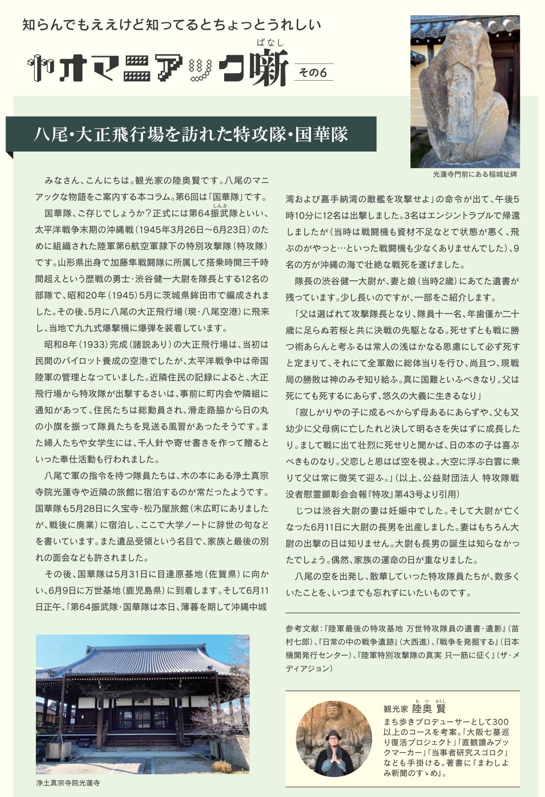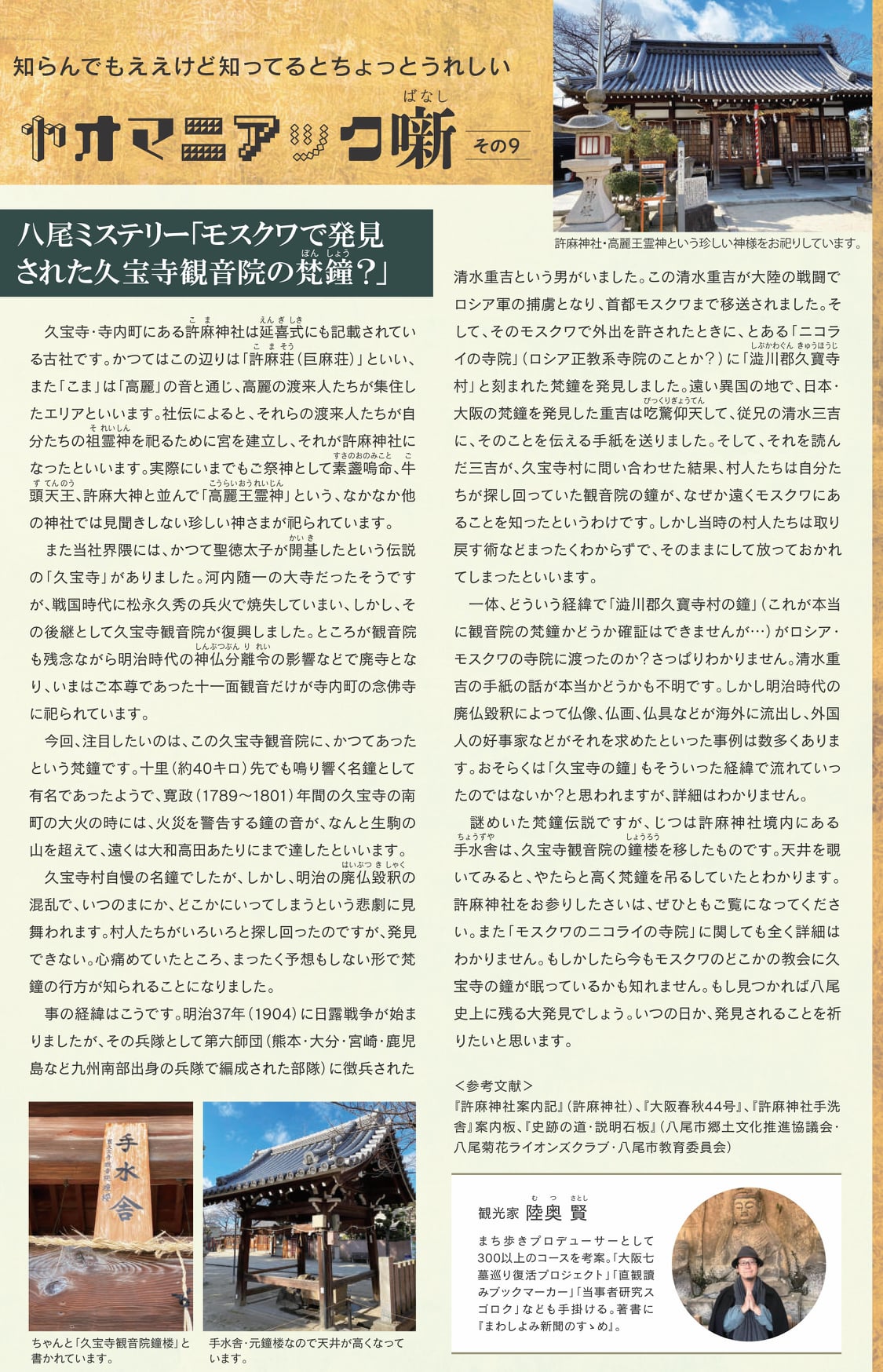 僕も一時期、『yaomania』に「ヤオマニアック噺」という八尾のまちネタのコラムを書いていたのですが、なくなったのは惜しいので再掲しておきます。
