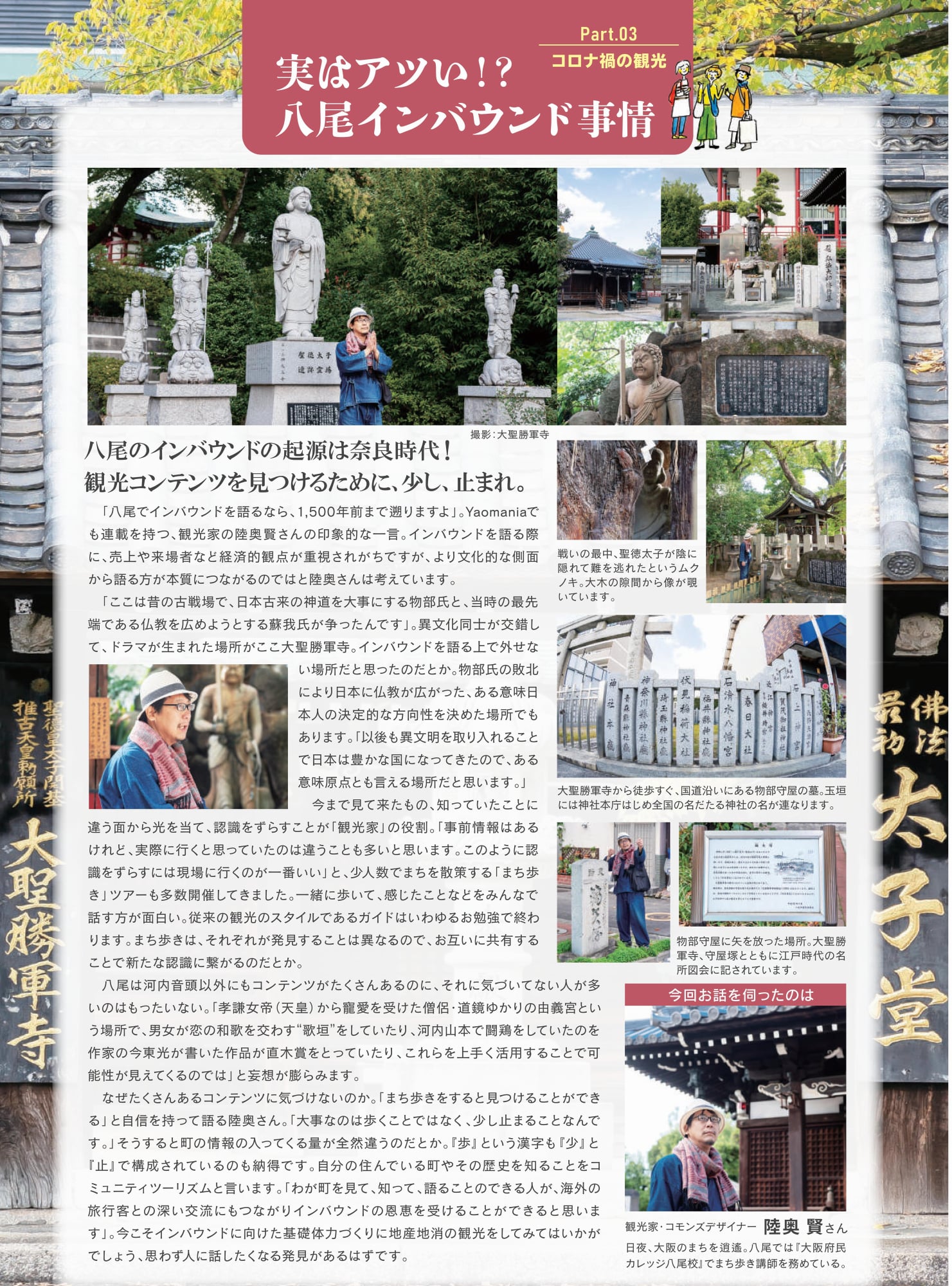 今後は、八尾市魅力創造部観光・文化財課が観光に尽力することとなっています。今まで以上のご指導、ご鞭撻を宜しくお願い致します。